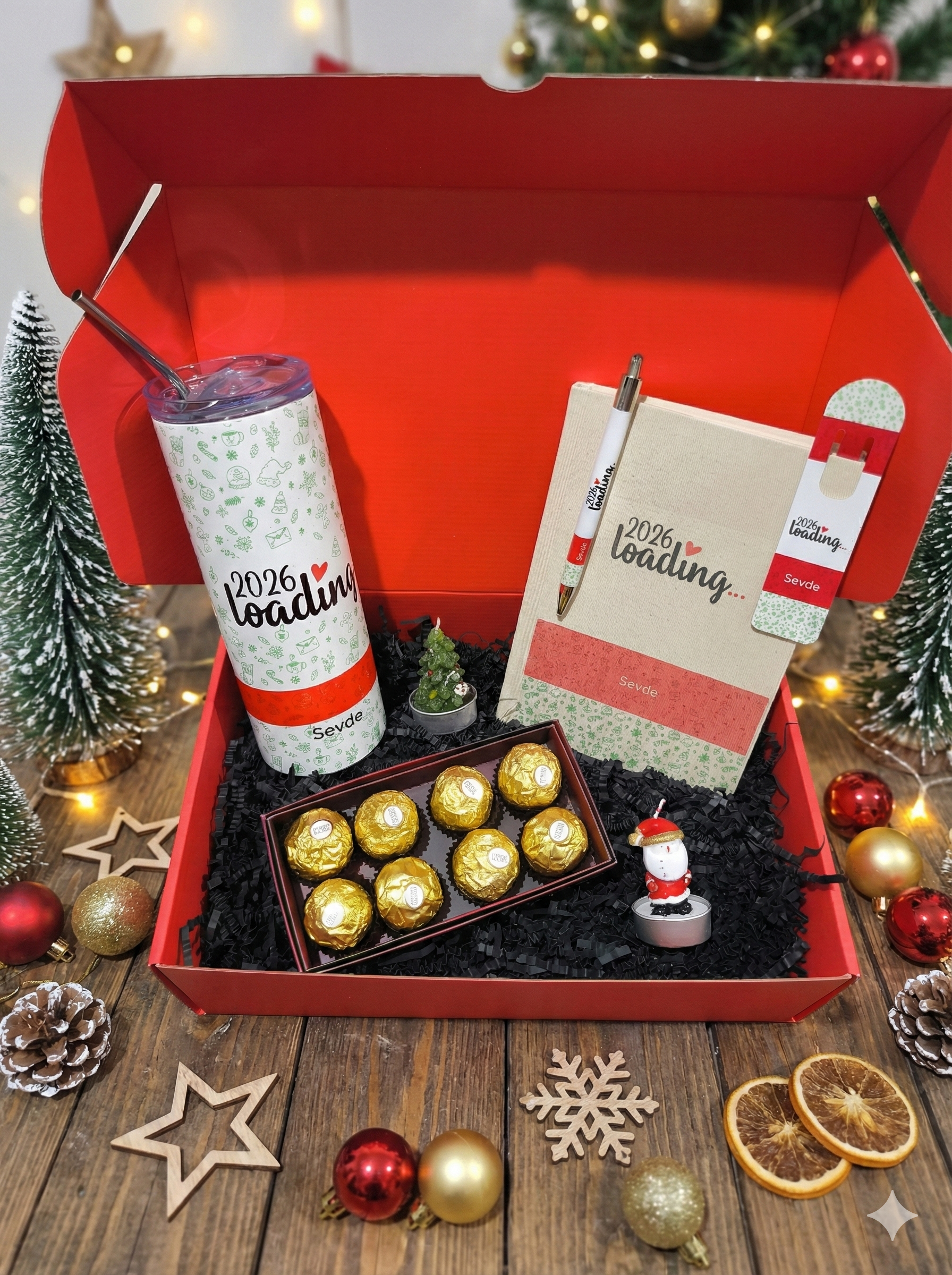 Yeni yıla küçük bir heyecan, tatlı bir motivasyon ve “tam ona göre” bir sürpriz… 2026 loading… temalı bu yılbaşı hediye kutusu; yeni yıl planlarını yazdıran, içeceğini keyifle içirten ve masanda her gün gülümseten parçalardan oluşuyor. Kırmızı kutusu ve yılbaşı konseptiyle, hediye verdiğin anda “özen” hissini direkt geçirir.