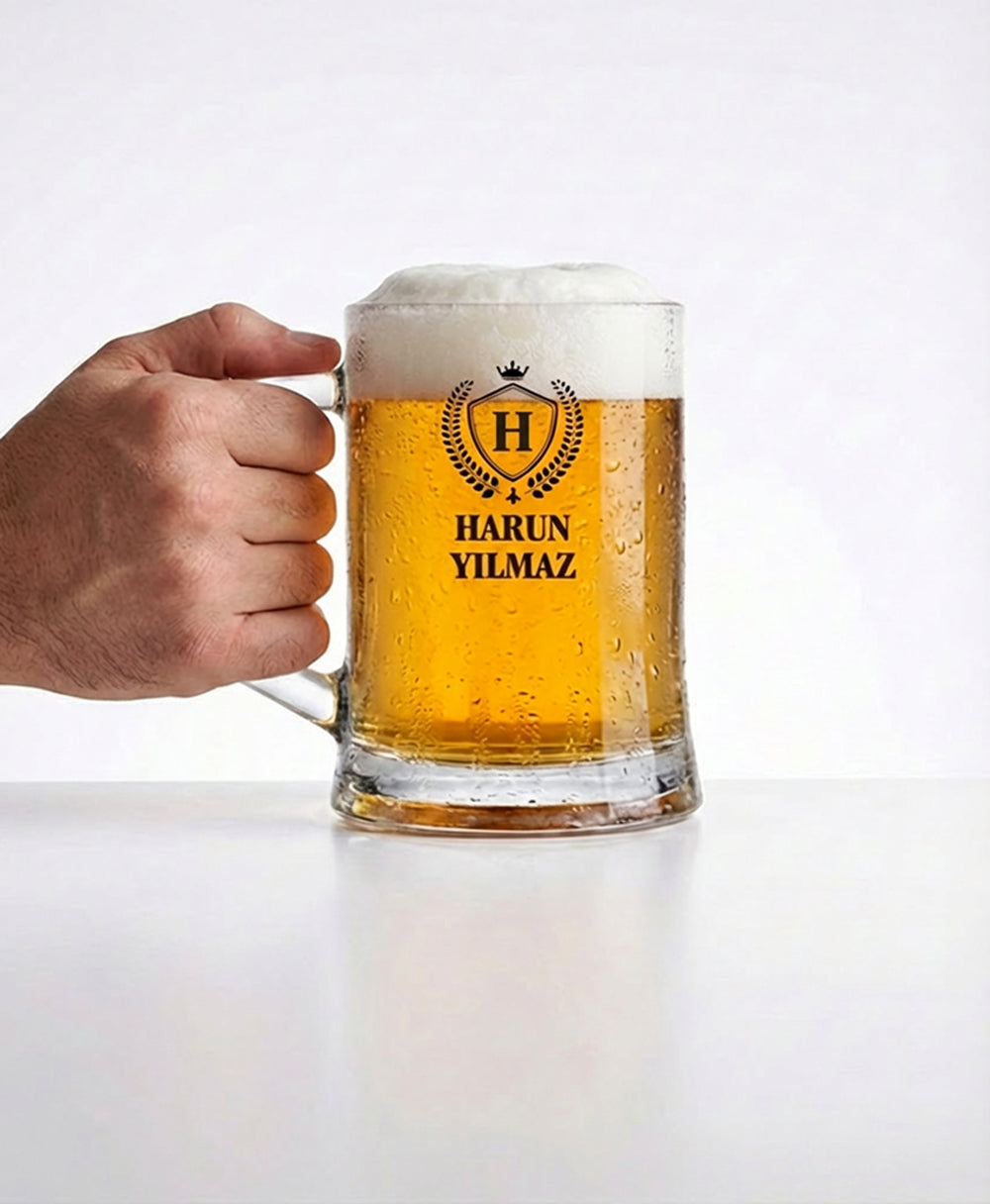 Bira keyfini “sıradan bardak” seviyesinden çıkarıp tamamen size ait hale getiren bir ürün: Siyah harf isim baskılı kişiye özel bira bardağı. İster evde maç izlerken, ister arkadaş buluşmalarında… Bardak masaya geldiği an kimin olduğu bellidir.