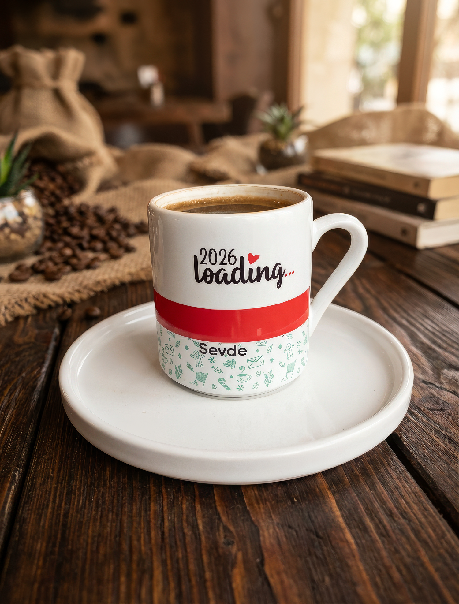 Yılbaşı konseptli şık metal kutu içinde, isim baskılı Türk kahvesi fincanı, yeşil el örgüsü bozuk para cüzdanı, çikolata ve mum ile sıcacık bir hediye seti. Hazır, özenli, hediye etmeye tam uygun.